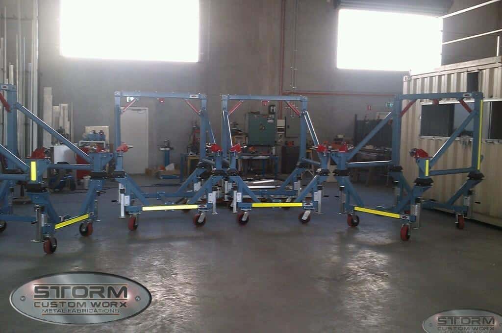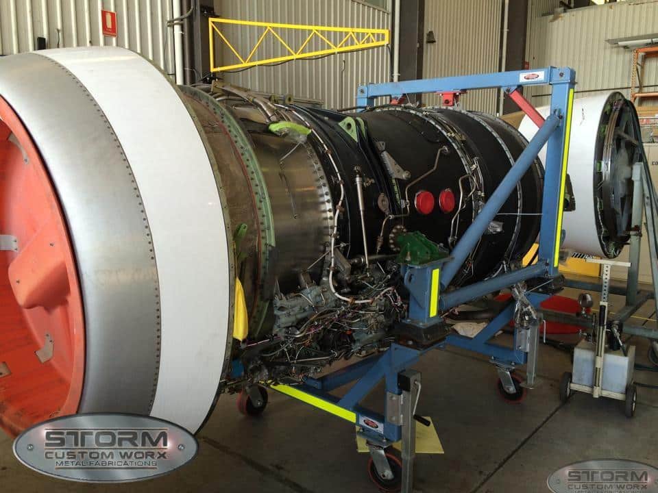 We created these custom service stands for Alliance Airlines. The custom mount and setup allows them to manage their Rolls Royce engines.