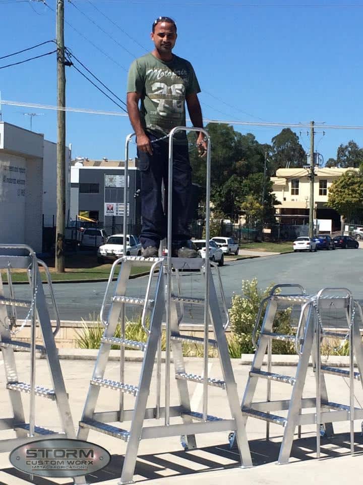 Constructed in aluminium, these moveable workstands are durable and in action now.