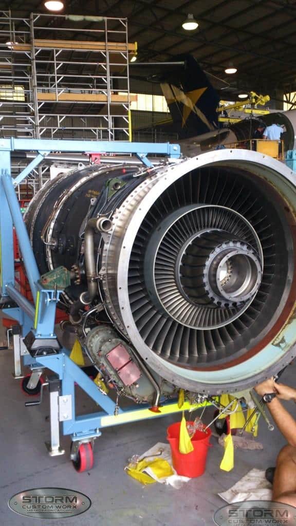 We created these custom service stands for Alliance Airlines. The custom mount and setup allows them to manage their Rolls Royce engines.